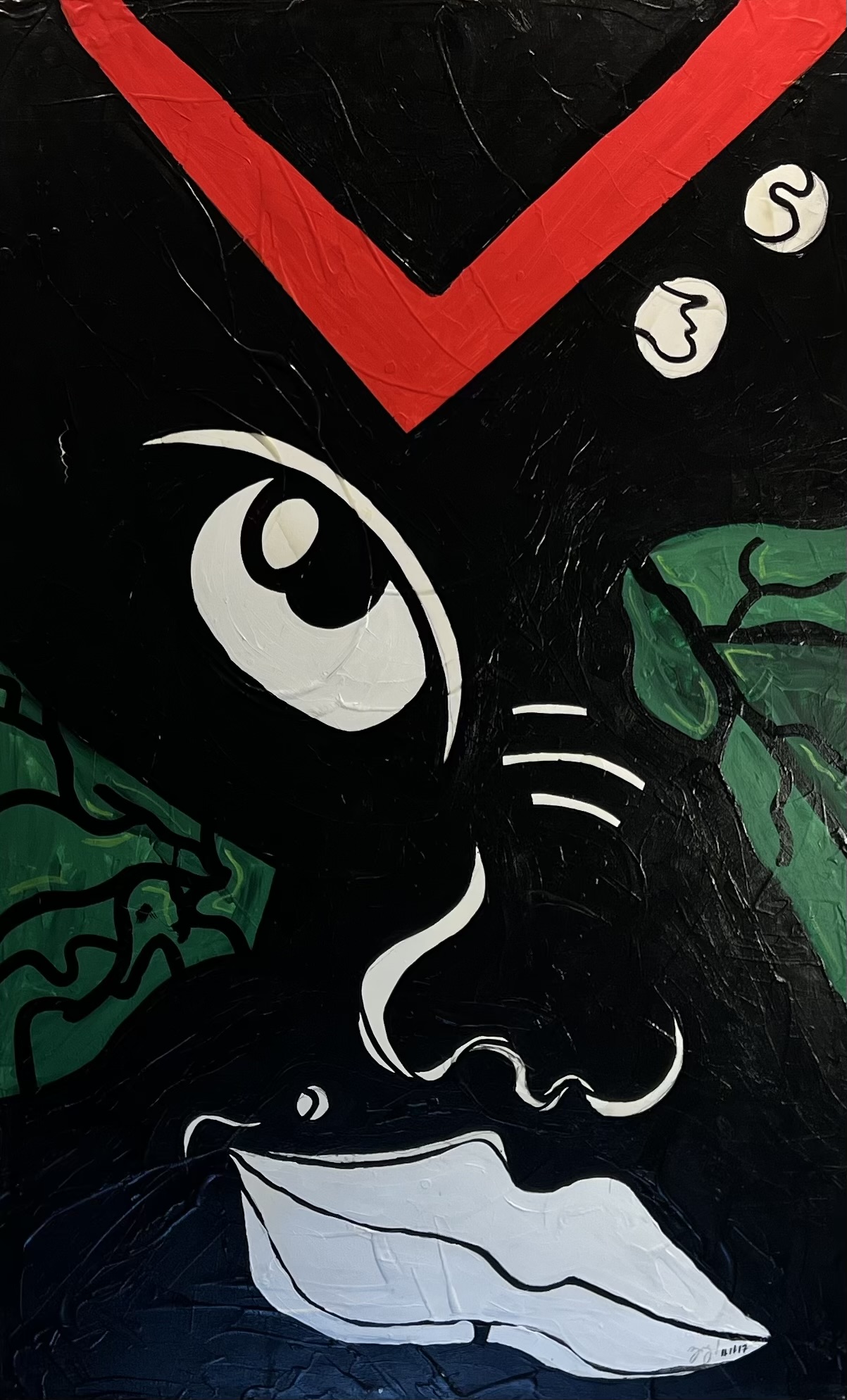 Acrylic on canvas painting Superior Vision By Anthony Z. Royster is striking exploration of enlightenment and elevated awareness. The painting employs bold reds and vibrant yellow-golds to evoke a sense of awakening and power, gradually drawing the viewer into softer, nuanced shades of blues and greens that symbolize clarity and balance.
